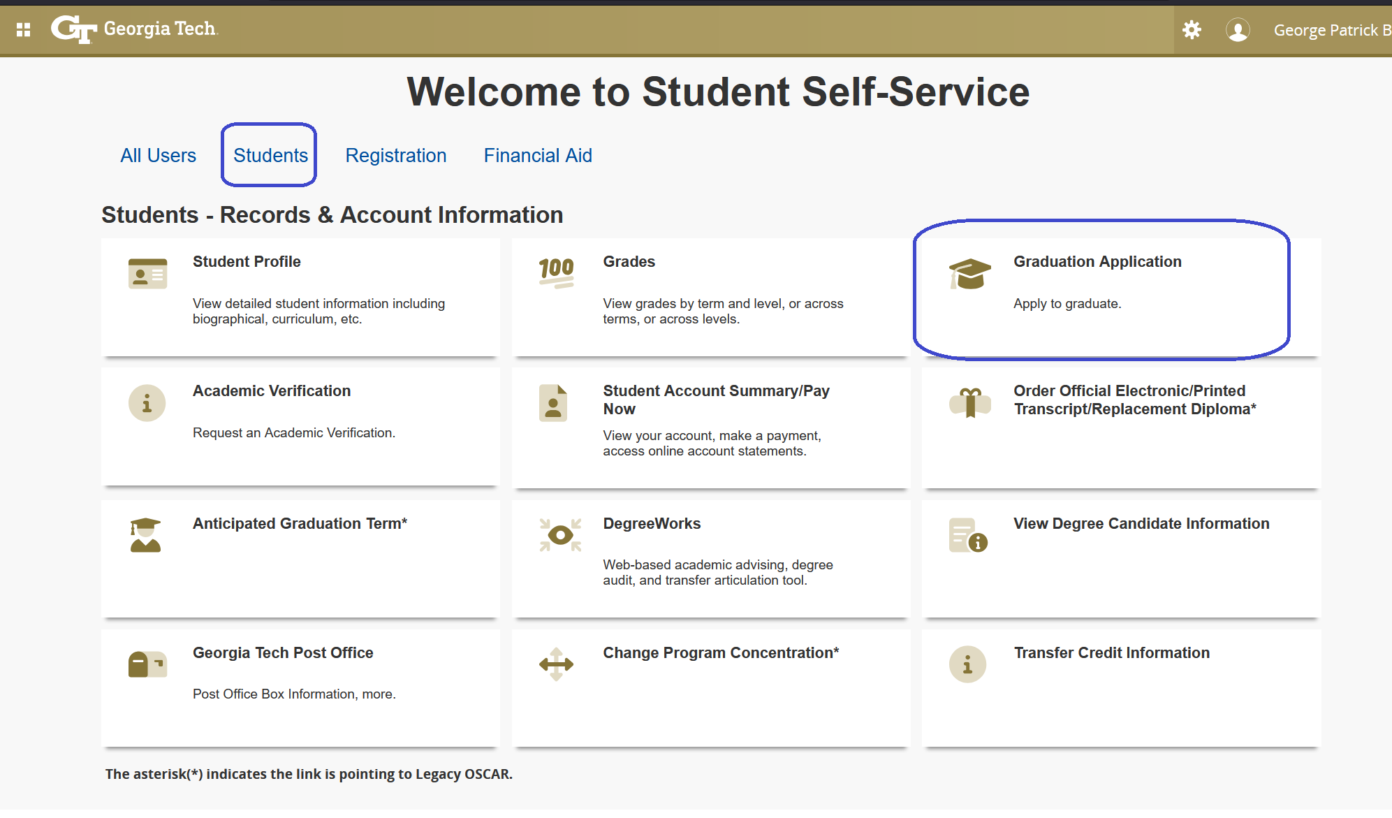 In order to graduate from Georgia Tech, a student must first submit an application for graduation.